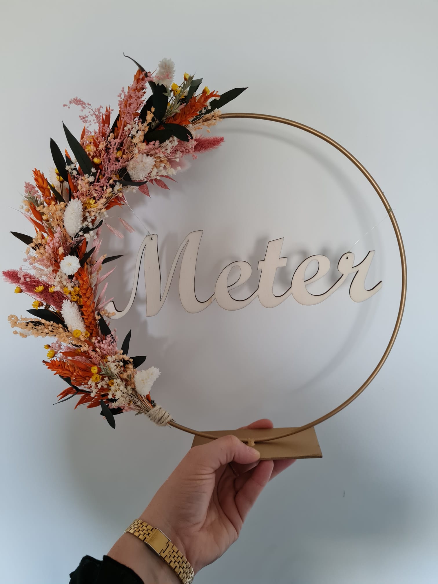 Mijn flowerhoops zijn handgebonden met kleurrijke droogbloemen. Deze bloemenkrans als cadeautje voor een vriendin, meter, huwelijk of een andere gelegenheid? Met een gepersonaliseerde boodschap of een naam erin? Of voor jezelf als deco in je huis? Bekijk hieronder enkele voorbeeldjes!